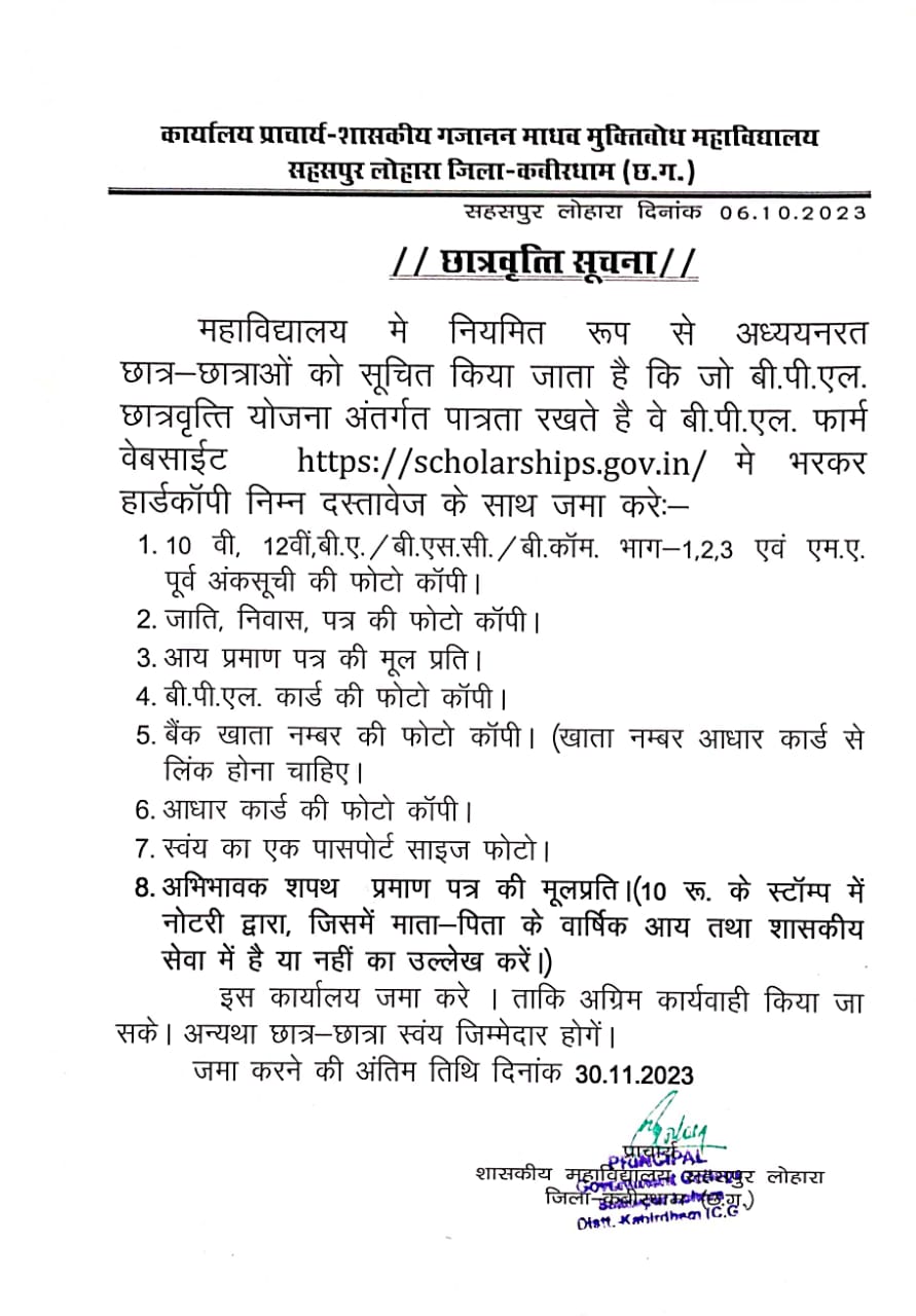 Notice of post matric scholarship