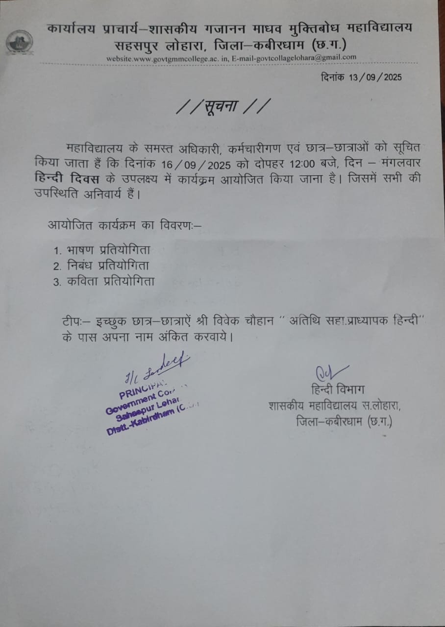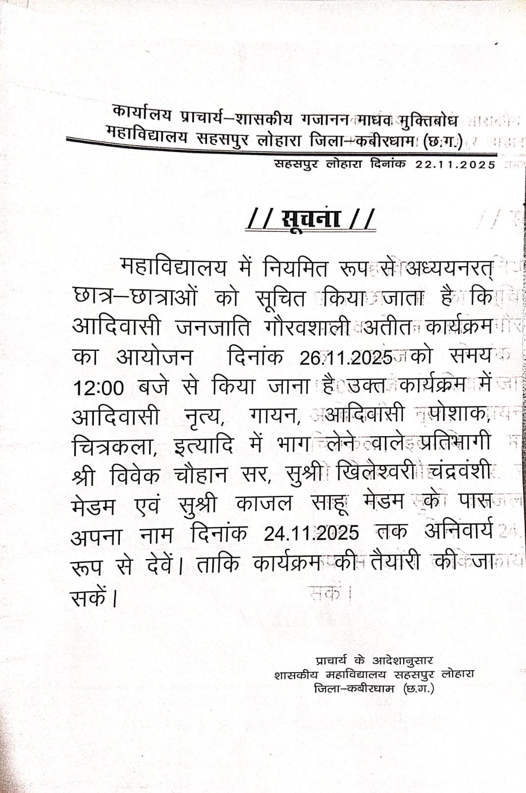 Introduction of Government Gajanan Madhav Muktibodh College Sahaspur Lohara Kabirdham